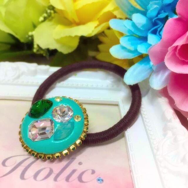エメラルドビジューのヘアゴム