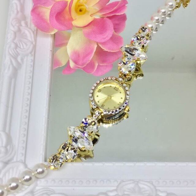 ビジューとパールをたっぷり使った腕時計です(*^_^*)