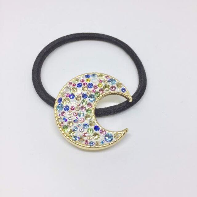 カラフルなスワロフスキーが輝く、美しい月モチーフのヘアゴムです。