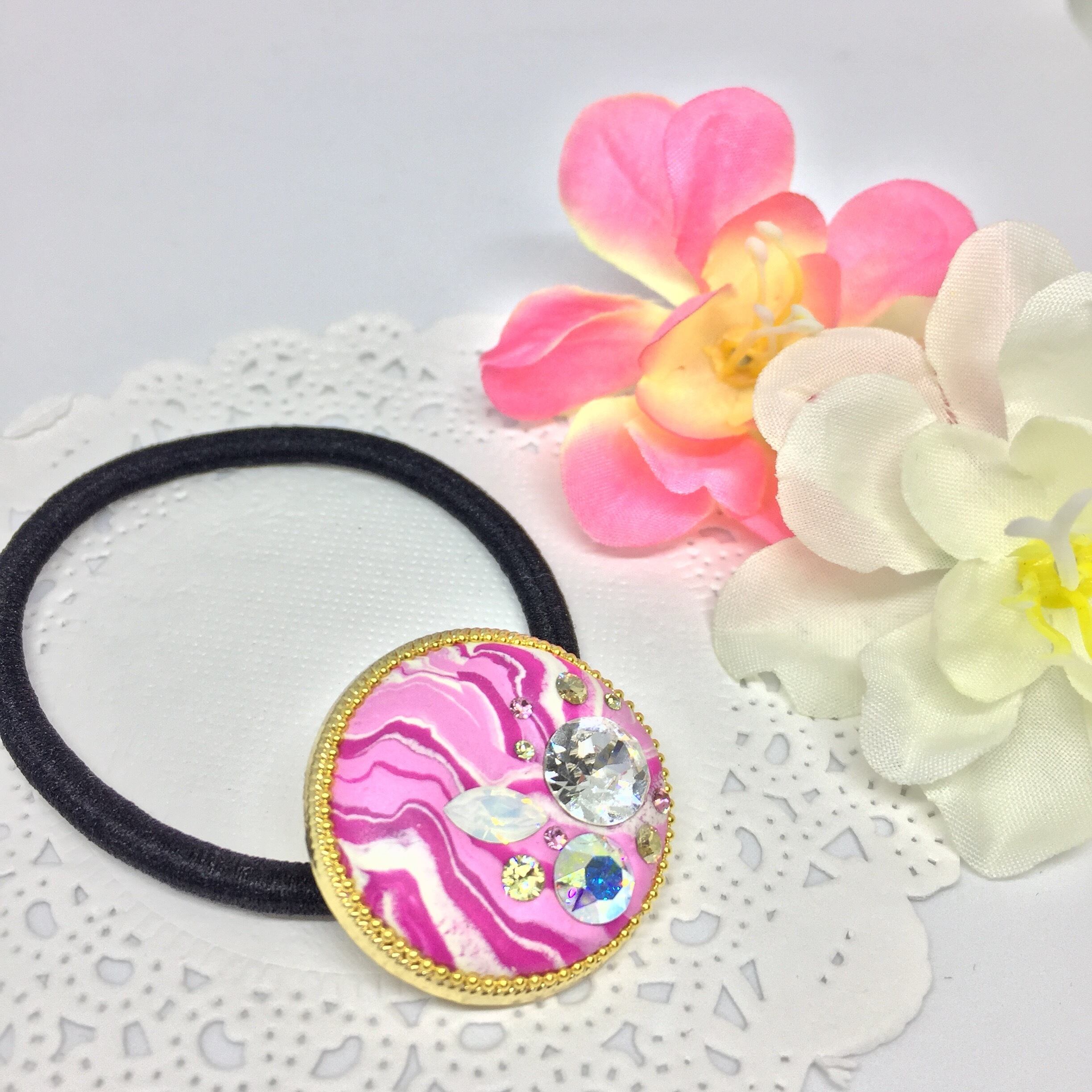 マーブルベースの土台に大粒ビジューを使用したヘアゴムです✩︎⡱